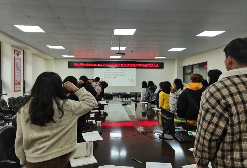 会议最后,支部负责人作会议总结,并宣布本科生党支部同意接收发展对象刘胜芳、杨鹏明为预备党员的决议,带领预备党员进行入党宣誓,老党员重温入党誓词,表达愿意为共产主义事业奋斗终生的愿望。