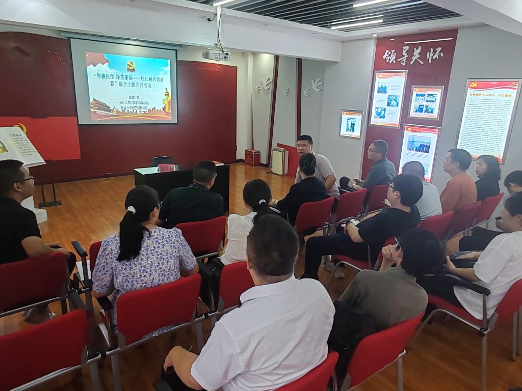 在庄严的重温入党誓词环节后,全体党员通过专题联学凝聚思想共识。计科系党支部王桃群副教授系统解读《党政机关厉行节约反对浪费条例》,滨湖社区工作人员结合社区治理实践传达学习弘扬“三大精神”的重要论述。“这次跨领域的理论学习,让我们在基层治理维度找到了作风建设与专业服务的结合点。”沙市区崇文街道滨湖社区居委会书记杨华超深有感触。