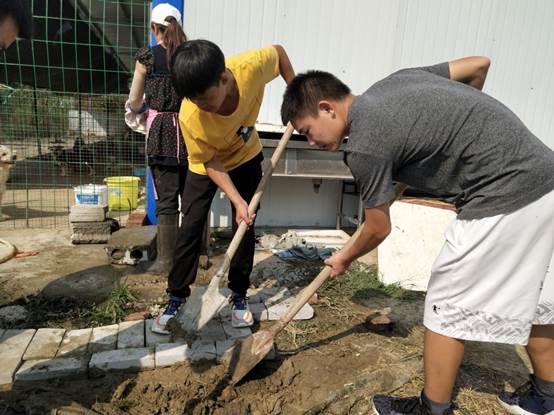 接下来,志愿者们被分配各种任务:铲除丛生的杂草、填平凹凸不平的泥路、搬离多余的围栏等。虽是金秋九月,天气却是十分炎热,而成员们却不惧高温,不嫌杂累专心致志进行手上的工作并在工作完成后主动分担更多事物。经历了挥汗如雨的体力工作后,成员们望着整齐无杂的基地和仍在嬉戏打闹吠吠不停的小狗们心中满是成就感,因为他们所做的一切都是为了给这群可爱的小生灵一个更温暖更舒适的家园。