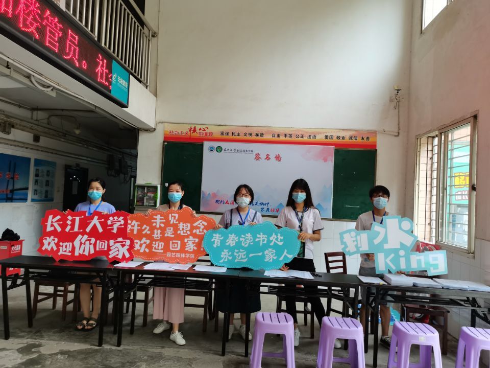 (通讯员 黄小云 王娟) 炎炎夏日,时而骄阳似火,时而雨水纷纷,betway必威中国12名志愿者一直坚守岗位,为毕业生返校工作贡献自己的力量。志愿者的到来为河滨公寓增添了几分生气,昔日安静的公寓又热闹起来,阳光的笑容是他们的日常必备,忙碌的身影如点点萤火,在西校区散发着温暖的光。他们有的是党员,有的是群众,他们有一个共同且响亮的名字——志愿者。
