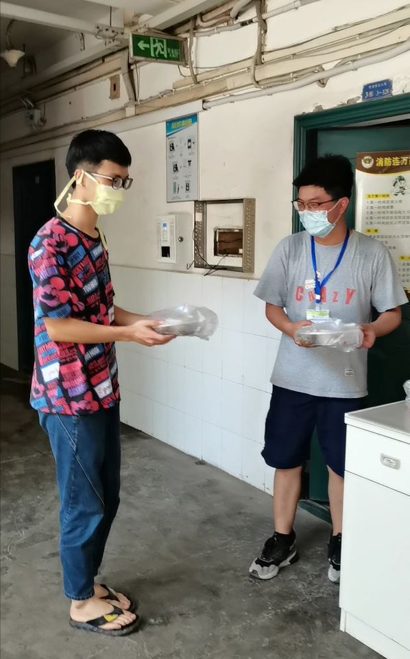 12位志愿者各有可爱之处,陈云,热情能干,负责校门口信息核对、接待、引导,并协助各类数据整理报送;王玉娟、何万霞负责里仁堂女生资料的下发、收集、体温监测、离校统计;朱雄萌,号称“打包小能手”,除了每日接待员工返校手续办理,还给众多同学连线视频打包行李,耐心仔细;黄露,对接班级的资料整理,耐心为每一位同学查漏补缺,确保离校手续完善。李英杰,号称“后勤小总管”,负责所有志愿者和返校员工的一日三餐;李港,会开三轮车的帅气学霸,每天开着三轮车为同学们运送行李、领餐送餐;吴友山、王亮,整理起档案,思路清晰有条不紊;纪道保,憨厚老实,任劳任怨,是大家的开心果……