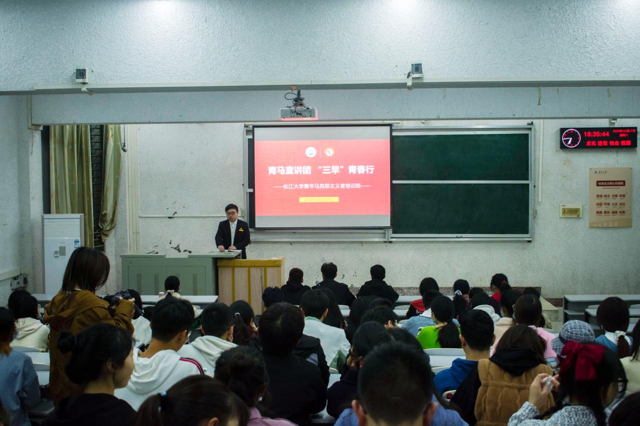 (通讯员: 赵宇)为培养新时代新要求下的高校员工骨干,2020年10月17日晚6点,betway必威中国19级员工干部参与西校区5教103展开第二期“青马宣讲团‘三早’ 青春行”宣讲活动。