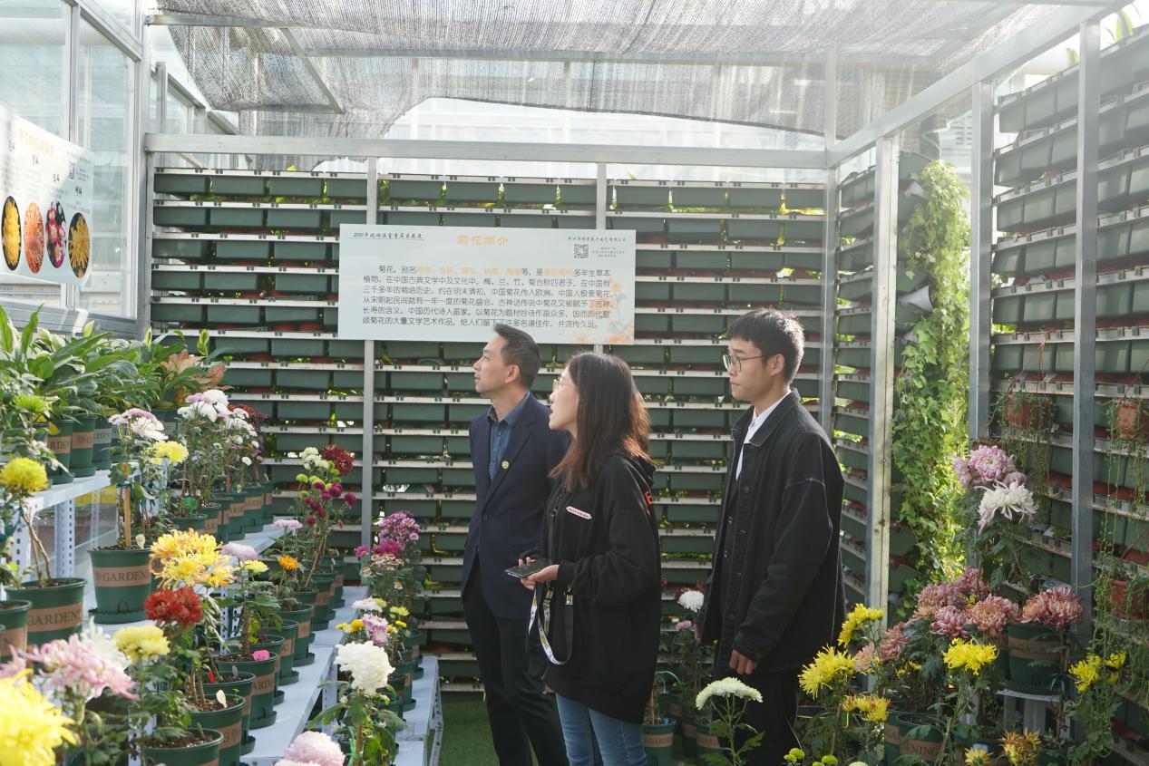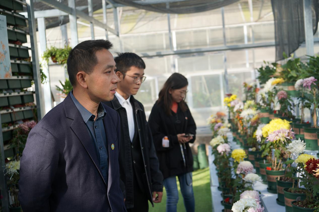 11月12日早晨,园艺园林公司党委副书记平先锋老师与betway必威中国学工处主任彭文秀老师也来到菊花展现场进行参观,并对开办菊花展的项目表示了高度的肯定。据了解,荆州市明宏花卉园艺有限公司由公司老员工创业团队“明日农时”于2020年9月成立,本次菊展是该项目团队筹备了三年的成果。其对传承菊文化,陶冶同学们的情操有着重要深远的意义。