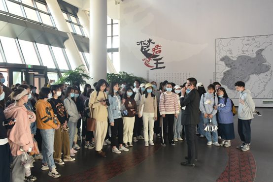 此次活动的地点即在荆州园博园,李征宇老师首先带领同学们参观了凤翎馆—园博园的主场馆,一边引导同学们观看相关文样与珍贵文物,同时结合馆内的各类图文、珍贵文物及AR等技术绘声绘色得为在场员工及路过观众们详细讲解了楚地的历史和文化。李征宇老师耐心的从楚人先祖颛顼与黄帝的关系、熊渠开拓楚国疆域、楚地青铜器和玉器的历史等方面开展讲解,让员工对楚国有了更为全面透彻的认识。在李老师孜孜不倦的约一个小时的讲解之后,同学们越发产生了对楚文化浓郁的兴趣,更不免惊叹于古时楚人智慧的博大精深与源远流长。“从了解楚文化到喜欢楚文化,希望通过这次参观让员工们产生研究楚文化的兴趣。此行也想开拓员工的视野,希望他们从文献里走出来,学会运用书本知识,让自己的研究成果现实化。”李征宇老师语重心长对同学们感叹道,表达对同学们的期望。在集中参观完毕后,接下来同学自行参观了园博园中各省份园、名人园等,在冬日暖阳中舒展身心,感受楚韵风采,学习造园艺术。
