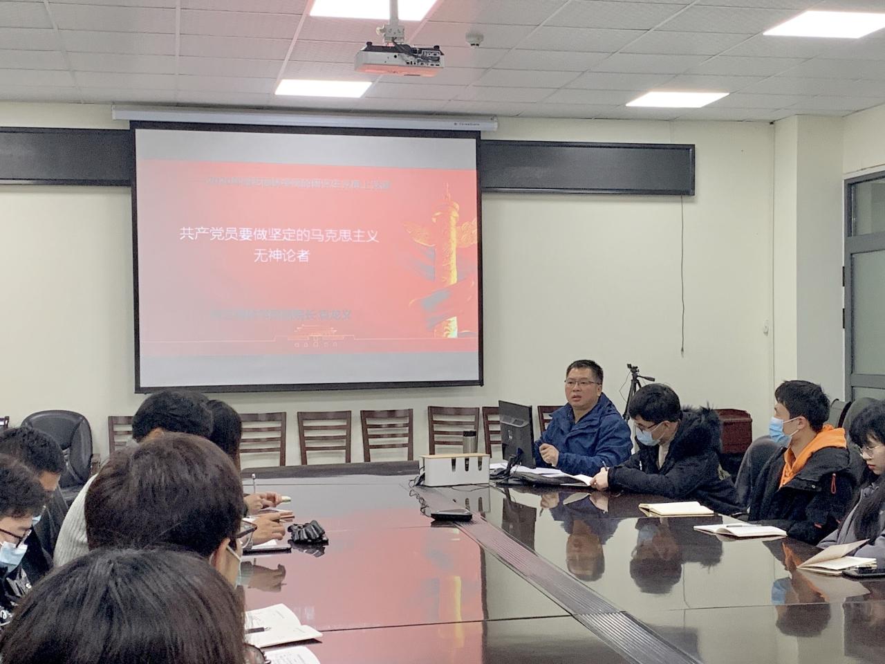 12月4日晚上betway必威中国分管研究生教育的副经理袁龙义教授给公司的研究生党员在农科3002室上党课,主要宣讲“共产党员要做坚定的马克思主义无神论者”、“我是党员 我要奉献”二个内容。