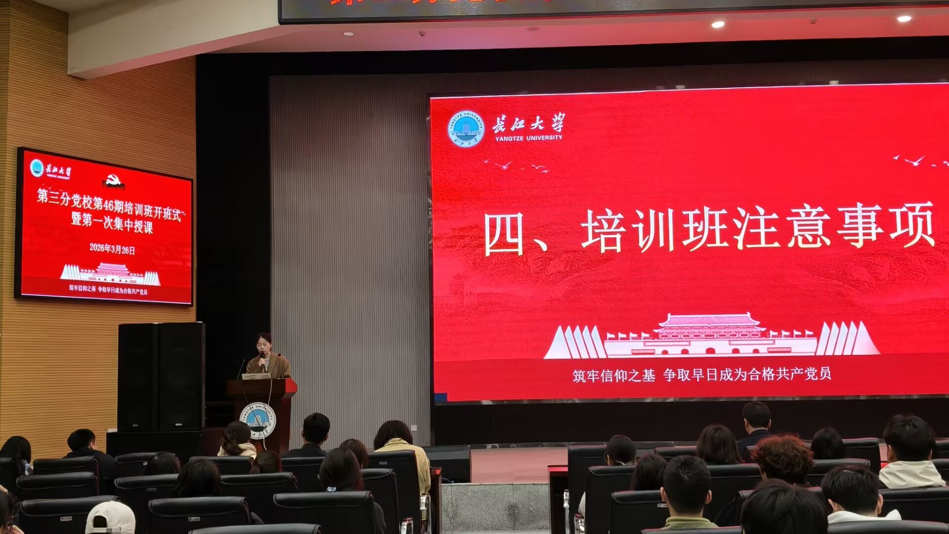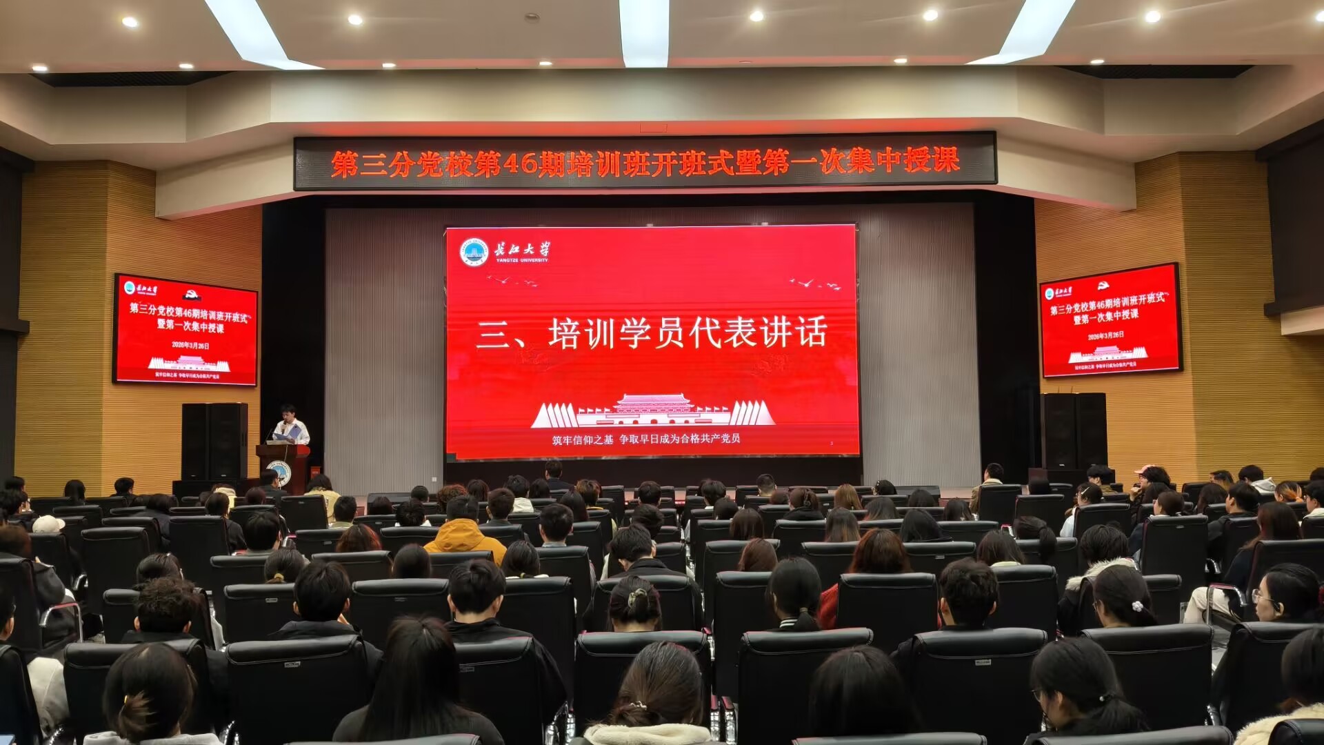 (通讯员 蒋雯静 卜文琼)3月26日晚,betway必威中国第三分党校第46期入党积极分子、发展对象和预备党员培训班在农科大楼1058报告厅顺利开课。培训班由园艺园林公司党建秘书卜文琼老师主持,农公司员工党建负责人唐玉婷老师、生命科学公司员工党建负责人李敏老师及西校区350余名学员参加本期培训。
