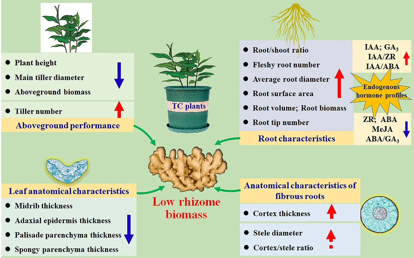 图2 生姜组培苗繁育植株田间姜块产量低的机理