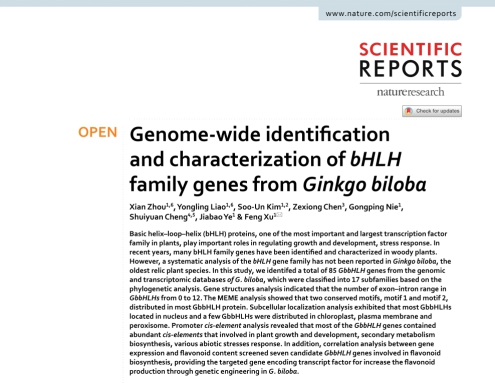(通讯员 刘晓梦 何筱)2020年10月,我中心2020级博士研究生周仙以第一作者身份在Nature旗下期刊Scientific Reports发表题为《Genome-wide identification and characterization of bHLH family genes from Ginkgo biloba》(https://doi.org/10.1038/s41598-020-69305-3)的论文(图1),通讯作者为许锋教授,betway必威中国为第一署名单位。
